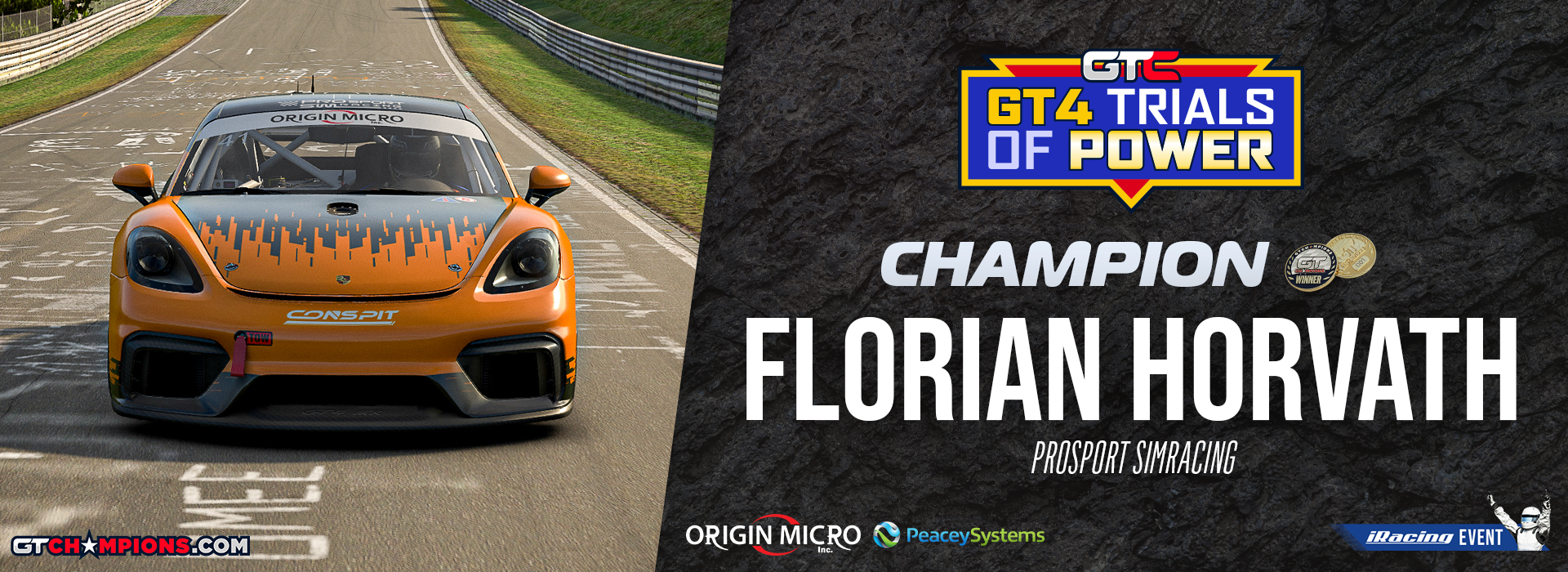 Florian Horvath is the GTC GT4 Trials of Power Champion! With two victories across the five-round season, he built a dominant campaign where a calculated P6 finish in the finale was more than enough to secure the title. We also want to say a huge thank you to every driver who competed and to everyone who tuned in to the broadcasts. Your support and participation are what made this series a success.
